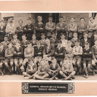 Football Team photo in front of main entrance, 1937